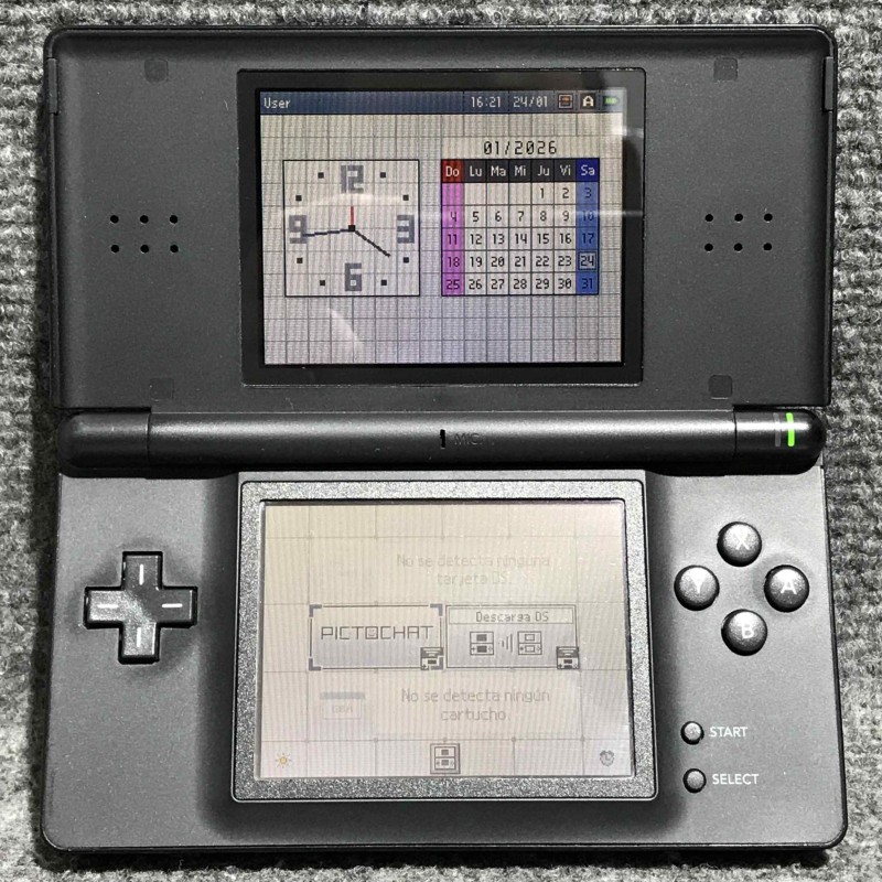 Consola Nintendo DS Lite con caja e instrucciones, color negro, región Pal, multidioma, incluye Español, funciona correctamente.