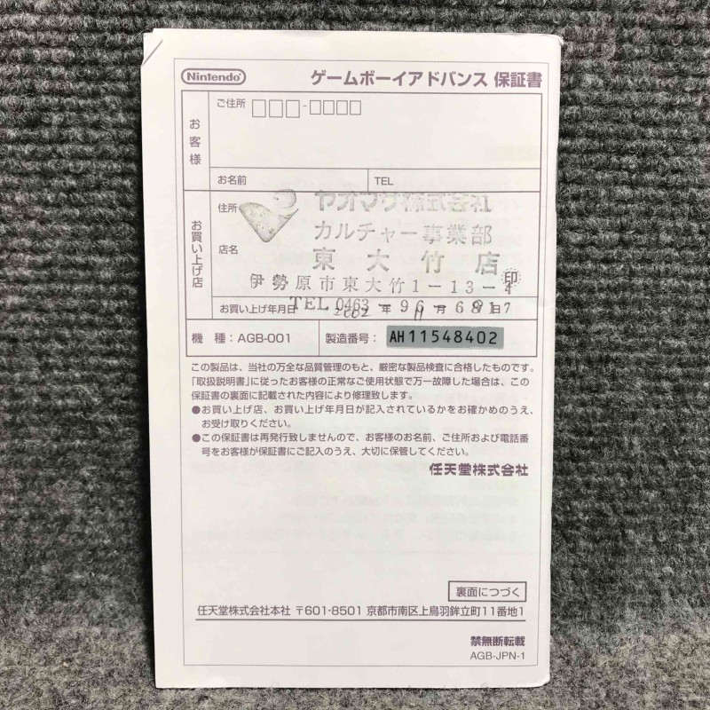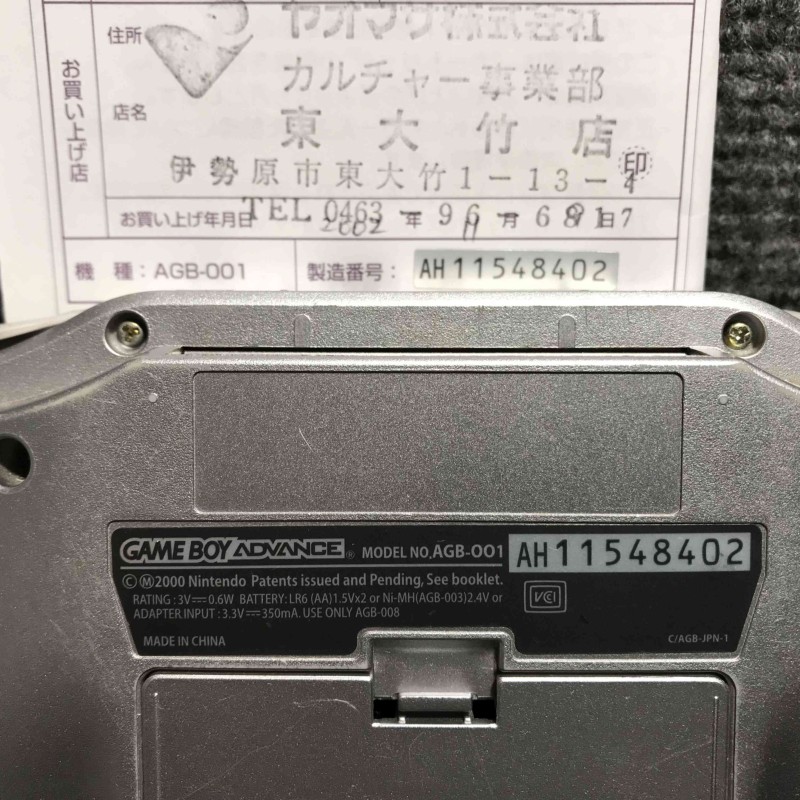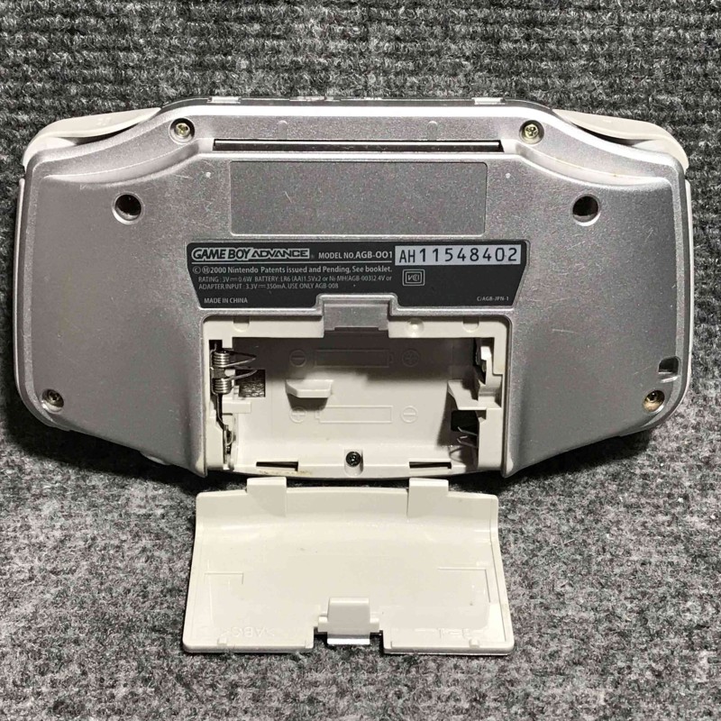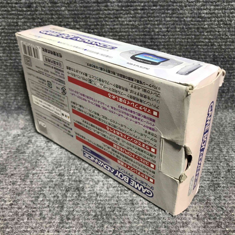 Consola Nintendo Game boy advance con caja e instrucciones, conserva la tapa de pilas, color gris, manual y consola coincidentes en número de serie, región NTSC Jap, funciona correctamente.