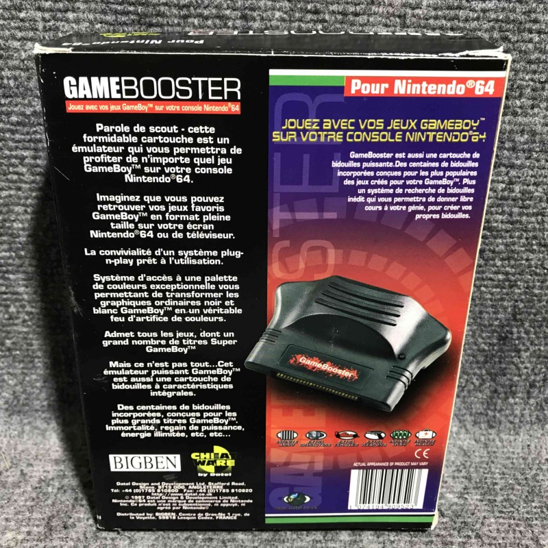Game booster con caja e instrucciones para la plataforma Nintendo 64, permite la carga de juegos de Game boy en la Nintendo 64, región Pal, idioma Inglés, funciona correctamente.