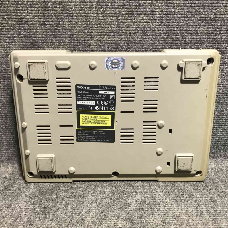 Consola Sony Playstation, modelo SCPH-9002 con caja e instrucciones, falta un corcho, se incluye un mando, cable de vídeo Av y cable de corriente, región Pal, idioma Inglés, funciona correctamente.